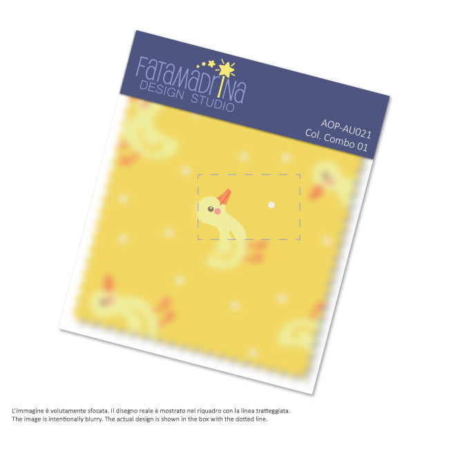 Un pattern vettoriale che presenta tanti simpatici anatroccoli gialli e pois bianchi su fondo giallo sole. Questo pattern, tenero e allegro, è perfetto da usare per prodotti per bambini. I colori vivaci e solari lo rendono adatto in particolare alla stagione primavera/estate.