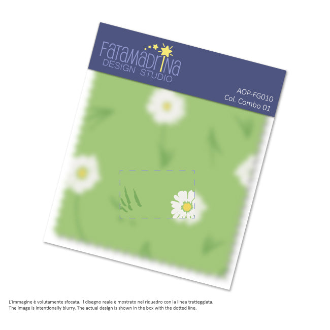 Un prato pieno di margheritine in un pattern vettoriale che sa di primavera. I fiori e i ciuffi d’erba sono stati dipinti a mano e poi digitalizzati. Il pattern è delicato e fresco, pensato per prodotti per bambini.