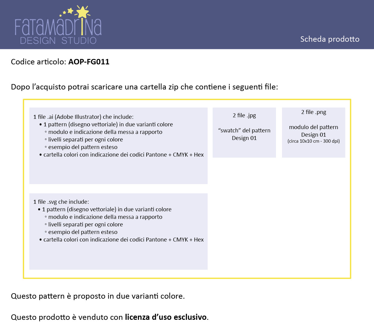 Questo prodotto è venduto con licenza d’uso esclusivo: una volta acquistato, potrai usare questo design per un tempo illimitato e in esclusiva.